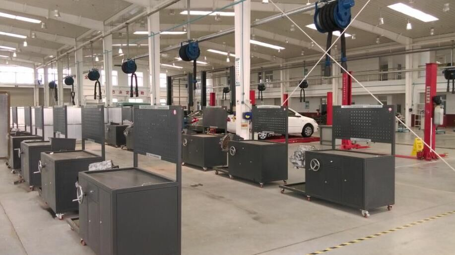 主要设备:大众手动5挡变速器10套,自动变速器16套,驱动桥6套、制动系统实验台2台、轮胎平衡机等检测设备4台,专用拆装工量具10套。