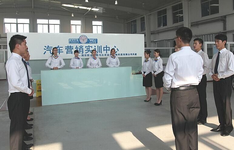 汽车营销实训中心主要面向汽车检测与维修技术专业、汽车制造与装配技术专业、汽车电子技术专业、汽车服务与营销专业、新能源汽车技术专业。主要用于汽车营销实战演练、汽车售后服务等实训,通过实训使学生学会汽车整车销售、维修接待、汽车金融服务等方面的能力,培养学生养成良好的职业素养。