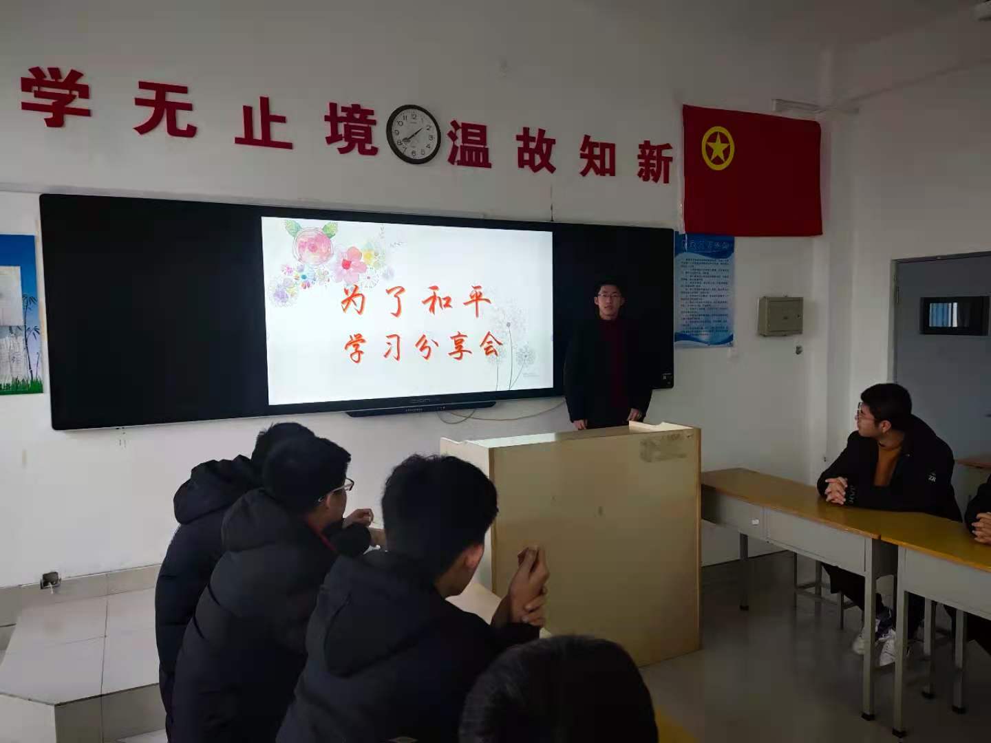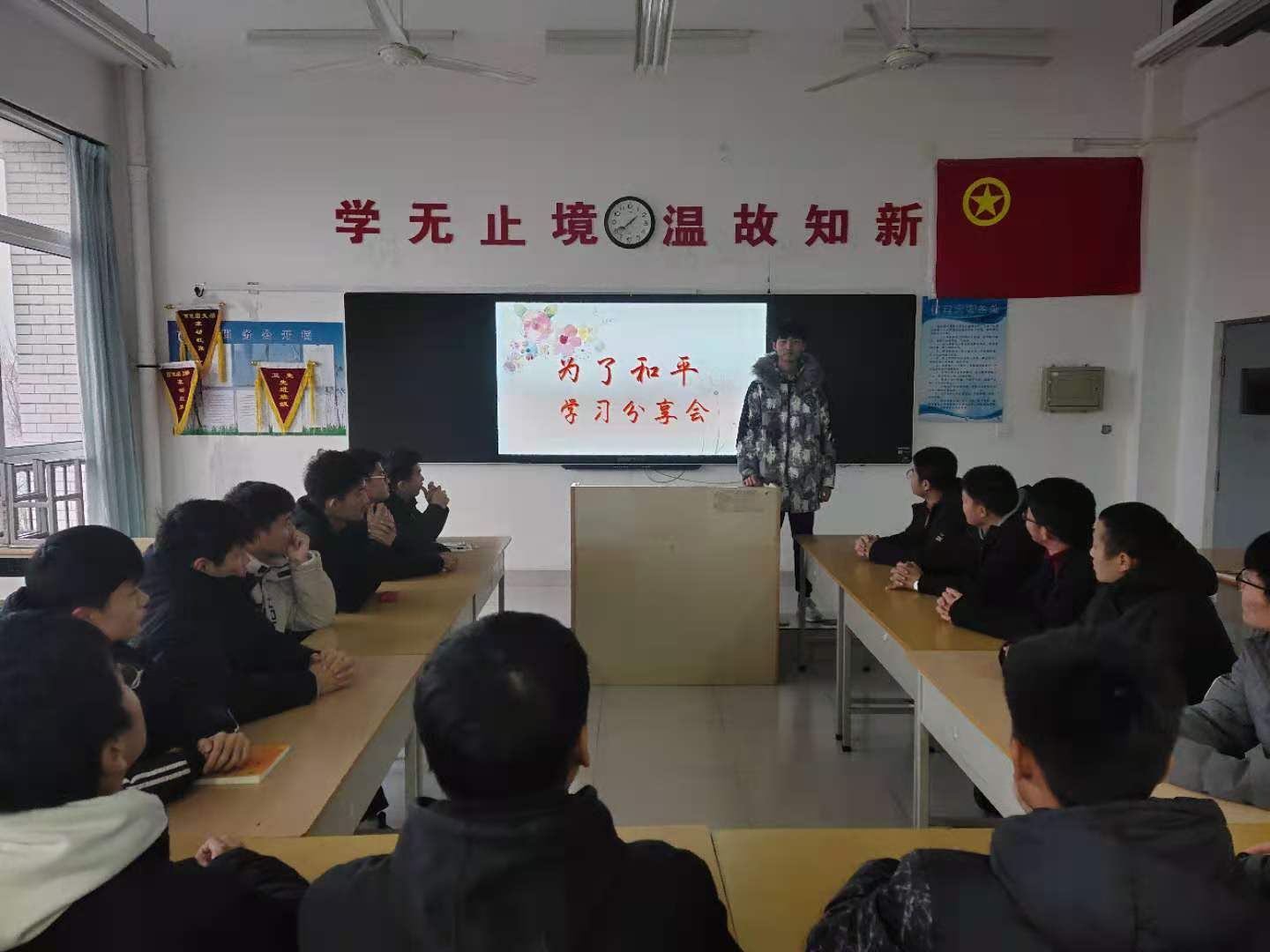 会上同学们积极踊跃地发言,分享中国人民志愿军感人的英雄事迹,讲述身边英雄革命先烈人物,表达对于老一辈革命英雄崇高的敬意。同学们纷纷表示:作为新时代青年学子应该传承抗美援朝精神,牢记艰苦奋斗的历史岁月,积极响应“青春是用来奋斗的”这一号召,努力争做有理想、有志气、有担当的新青年,秉承“崇实尚行 敢于争先”的潍职精神,努力学好专业技能,为祖国建设添砖加瓦。