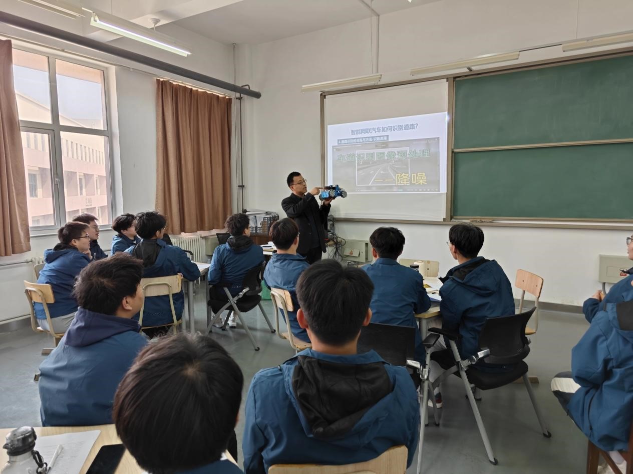 活动中,我院教师与潍柴职业大学《智能网联汽车技术概论》课程组教师开展了集体备课、研课,对课程定位、课程目标、教学内容、教学组织实施进行了总体设计,将企业一线新技术、新规范、新项目等与教学资源进行充分融合。授课中,面对潍柴职业大学2024级智能网联汽车技术6班的20名同学,我院教师课堂准备充分,教学设计思路清晰,教学内容详实,教学手段多样化运用,课程思政融入充分恰当,充分展现了太阳集团官网教师风采。