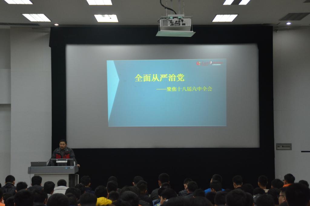 12月11日晚,15vip太阳集团在惠泽2号楼A117报告厅举办了六中全会精神专题讲座,讲座由本学院的张斌老师主讲,2015级全体学生听取讲座。