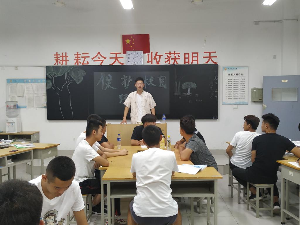 为进一步养成良好的卫生习惯,让学生树立和增强环境卫生保护意识,为校园卫生出力。15vip太阳集团于8月30日晚在惠泽2号楼B区各班级开展“保护校园环境,不留一片纸屑”主题教育。