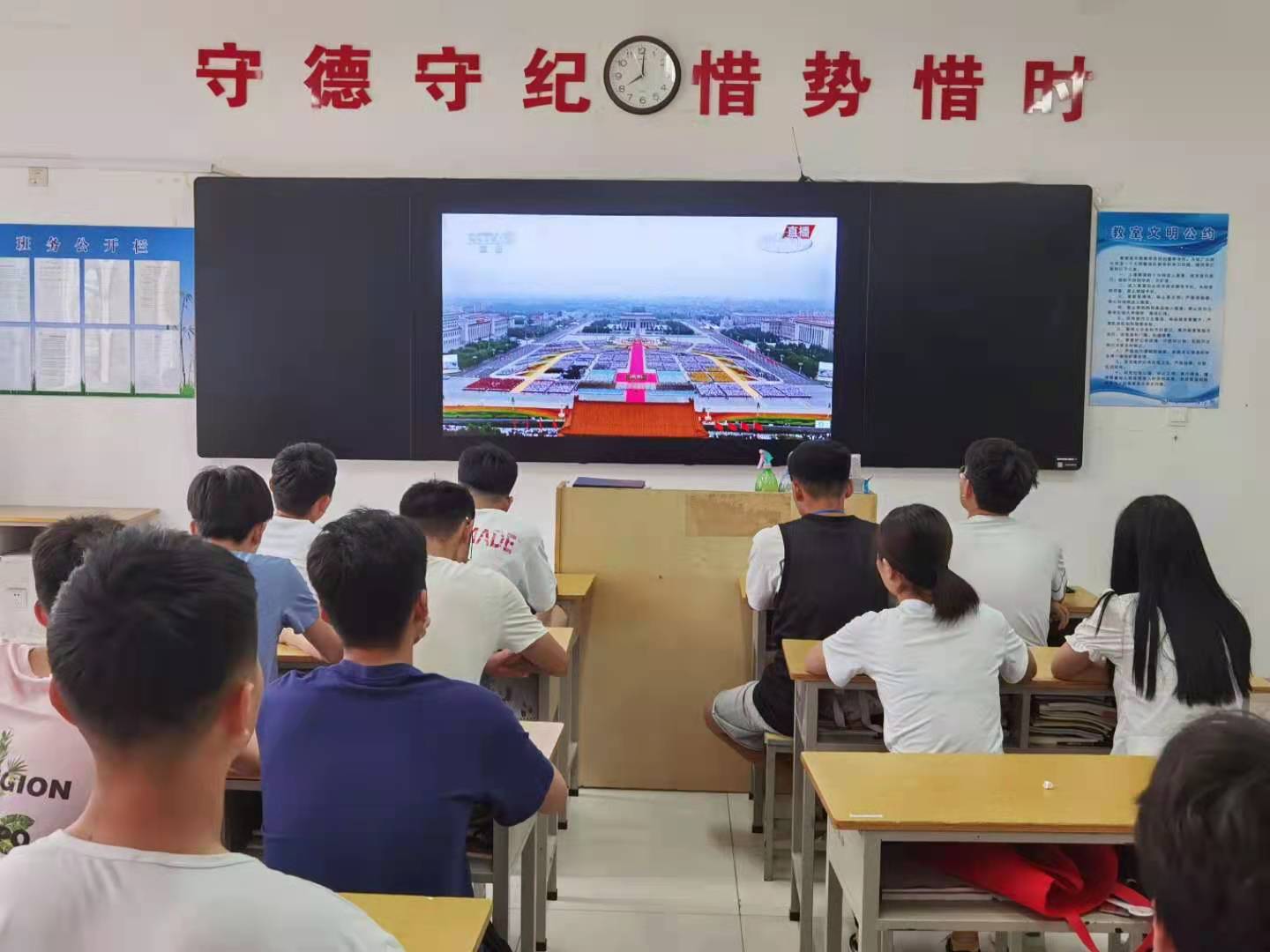 8时整,100响礼炮响彻云霄,同学们全体肃立,目送国旗护卫队官兵护卫着五星红旗,迈着铿锵有力的步伐走向升旗区。伴随着雄壮的《义勇军进行曲》,全体同学齐声高唱中华人民共和国国歌,注视着鲜艳夺目的五星红旗冉冉升起。大会进行中,同学们全神贯注,边观看边思考,边聆听边记忆,现场气氛热烈,掌声阵阵。习近平总书记的重要讲话,为新时代中国特色社会主义发展绘就了蓝图,指明了前进方向,令人欢欣鼓舞、倍感振奋。大会结束后,同学们激动的心情久久不能平静,就讲话精神尤其是对青年人的寄语部分展开了热烈讨论。